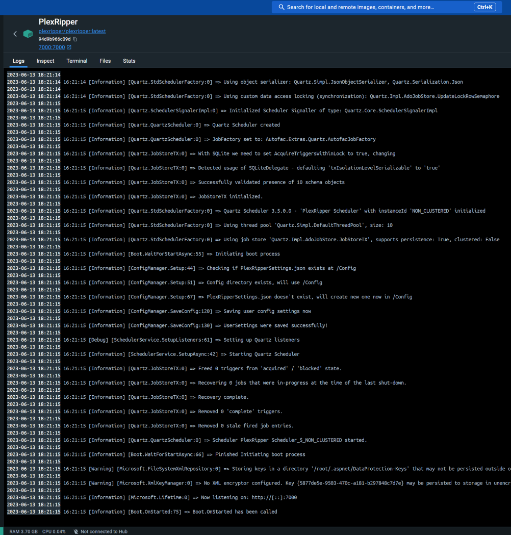 - If all went well you should see the Reaparr booting up in the Docker Desktop window